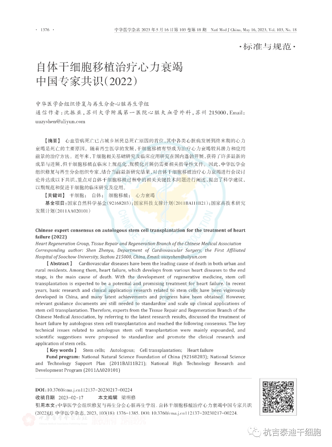 近日,《中華醫學雜志》2023年第18期發表了中華醫學會組織修復與再生分會組織專家撰寫的《自體干細胞移植治療心力衰竭中國專家共識(2022)》,重點對自體干細胞移植過程中的相關關鍵技術問題進行了闡述,并對自體干細胞移植治療心血管病的未來研究方向提出了建議,以期規范和促進干細胞的臨床研究及應用。