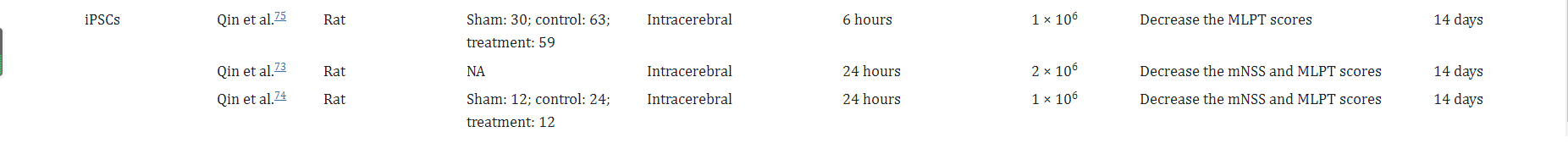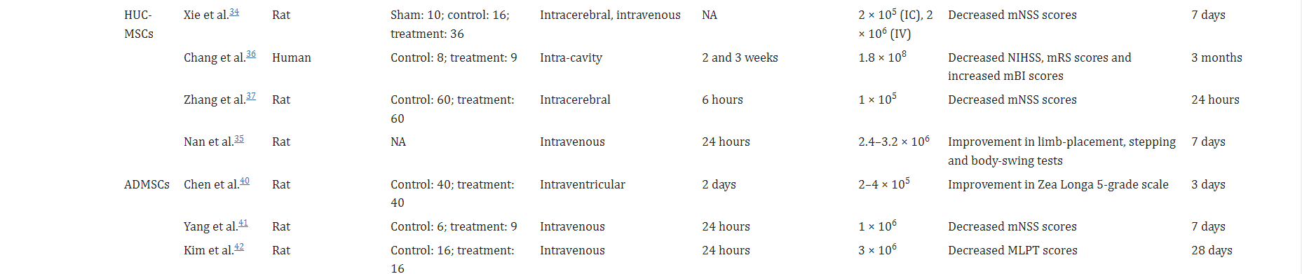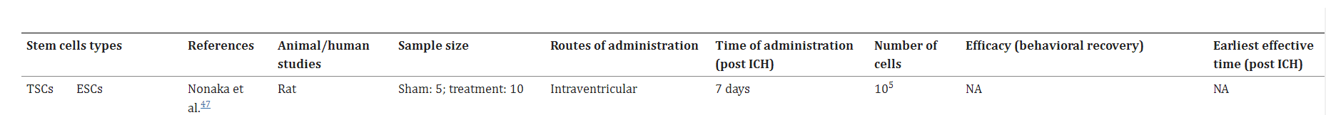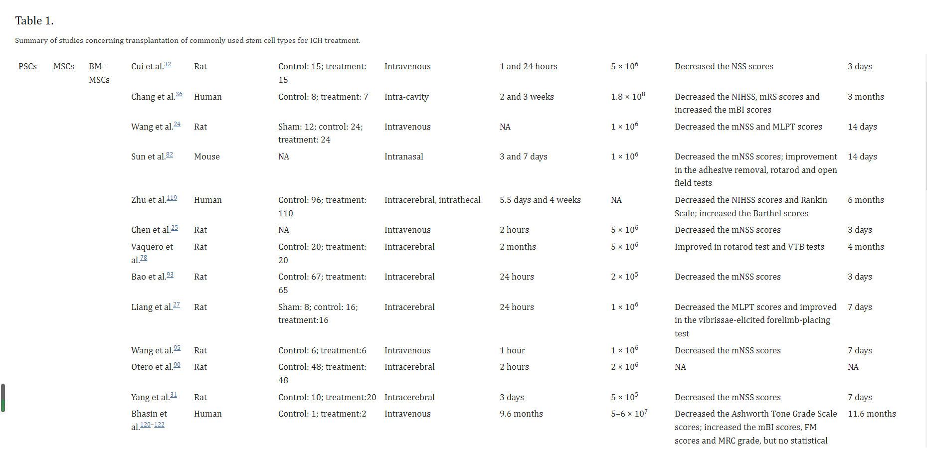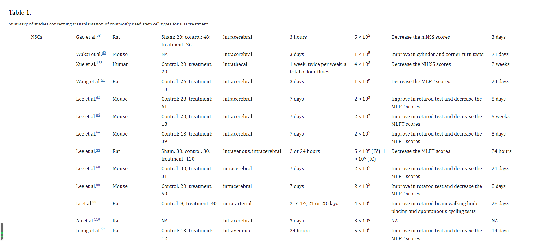 事實上,不同的細胞類型和不同的遞送途徑會影響SCs到達目標和工作的方式,這將導致不同的結論,因此這些研究沒有可比性。需要更具體的實驗,重點關注ICH的SC交付時間窗口。