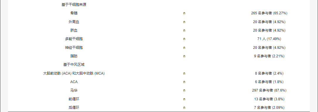人口統(tǒng)計(jì)學(xué)、干預(yù)時(shí)間、中風(fēng)部位和干細(xì)胞類型