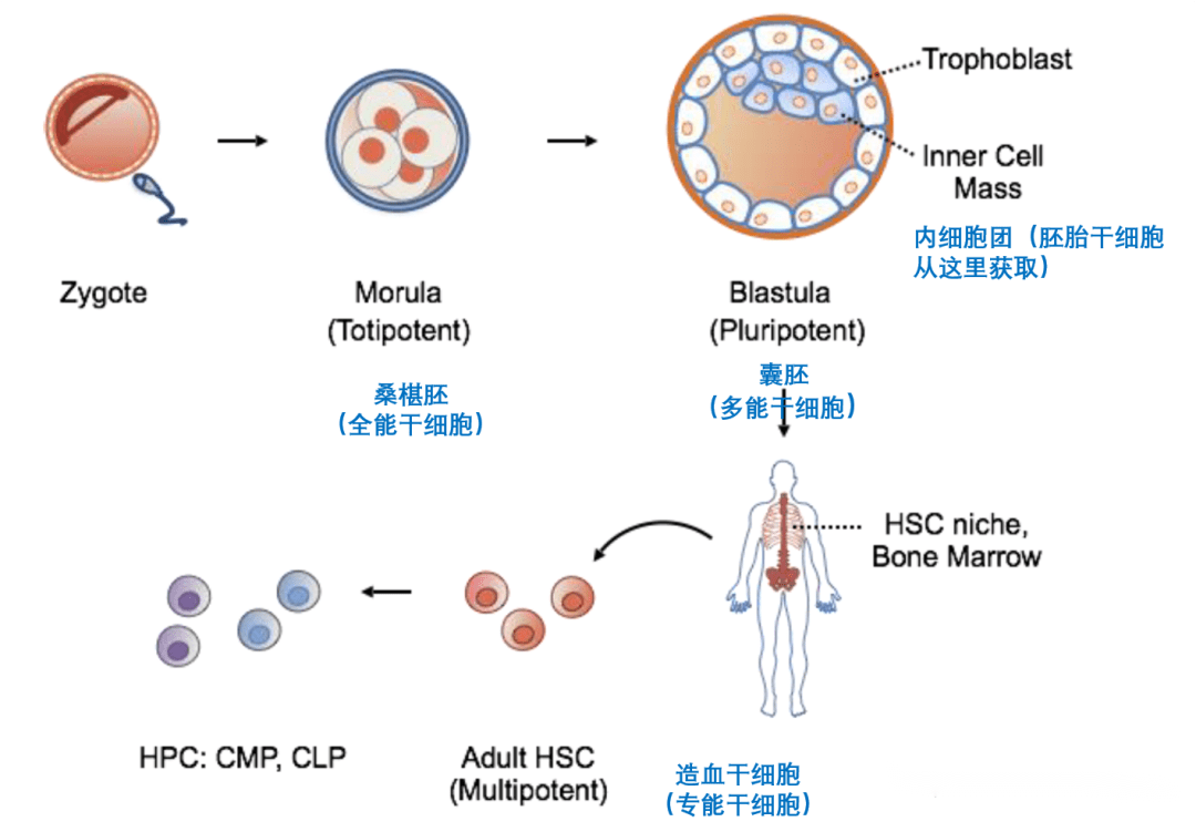 - 胚胎干細(xì)胞(Embryonic stem cell):胚胎干細(xì)胞是一種高度未分化細(xì)胞,具有發(fā)育全能性,可被誘導(dǎo)分化成機(jī)體幾乎所有細(xì)胞類型,但不能發(fā)育成完整個(gè)體,不屬于全能干細(xì)胞。