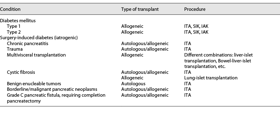 醫生可能會對切除整個胰腺以治療嚴重和慢性胰腺炎的患者進行不同類型的胰島移植,稱為胰島自體移植。1型糖尿病患者不能接受胰島自體移植。