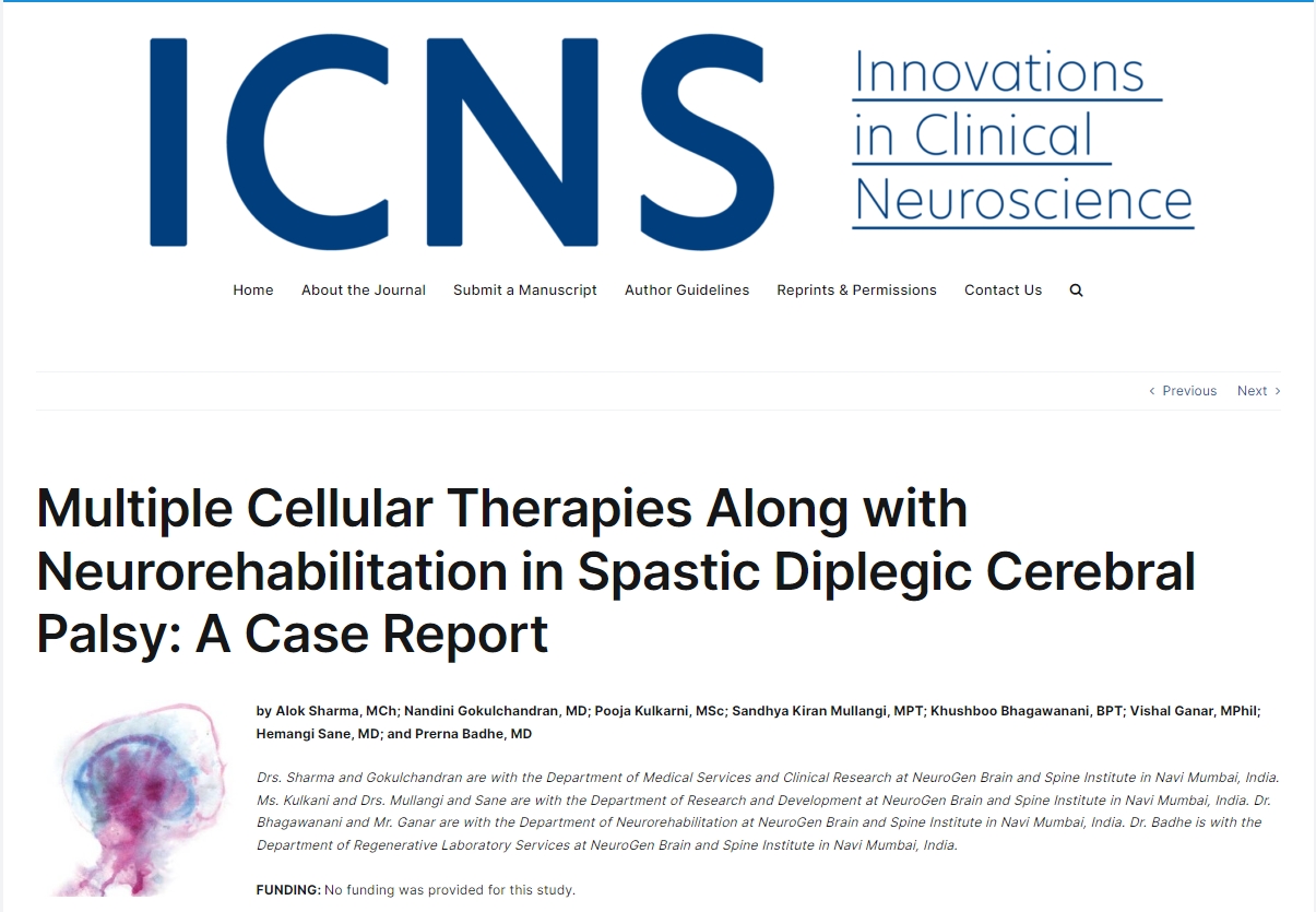 《創新臨床神經科學》雜志中一篇文章報道,多種細胞療法以及神經康復可能是促進腦癱康復的一種安全、可行的新選擇