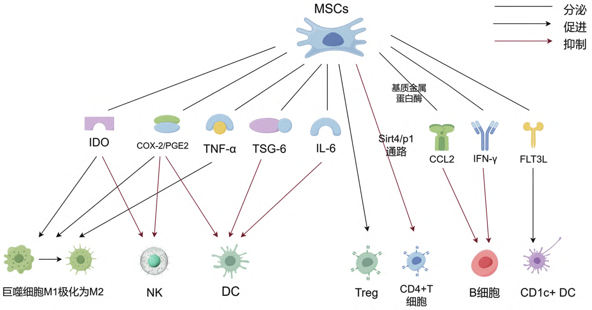 1.間充質干細胞能夠分泌可溶性因子,調控免疫細胞