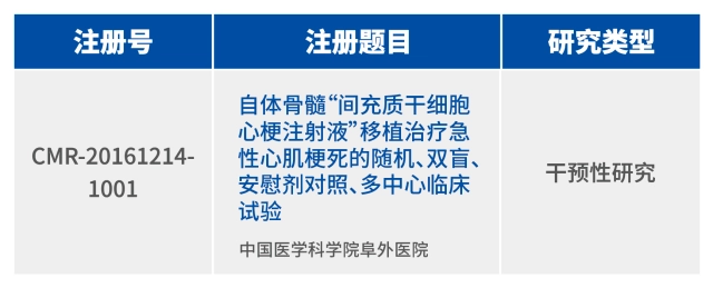2016年年底,在我國醫(yī)學(xué)研究備案登記信息系統(tǒng)中,干細胞臨床研究項目《自體骨髓“間充質(zhì)干細胞心梗注射液”移植治療急性心肌梗死的隨機、雙盲、安慰劑對照、多中心臨床試驗》獲得國家備案,得到了國家干細胞臨床研究專家委員會的集體認可。