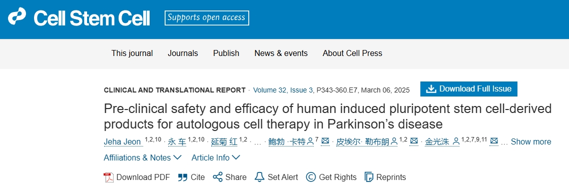 2025年2月13日,哈佛醫(yī)學(xué)院麥克萊恩醫(yī)院聯(lián)合韓國大田韓國科學(xué)技術(shù)院進(jìn)行了一項(xiàng)“人誘導(dǎo)多能干細(xì)胞衍生品用于帕金森病自體細(xì)胞療法的臨床前安全性與有效性研究”。研究結(jié)果發(fā)表在期刊雜志“Cell Stem Cell”上。