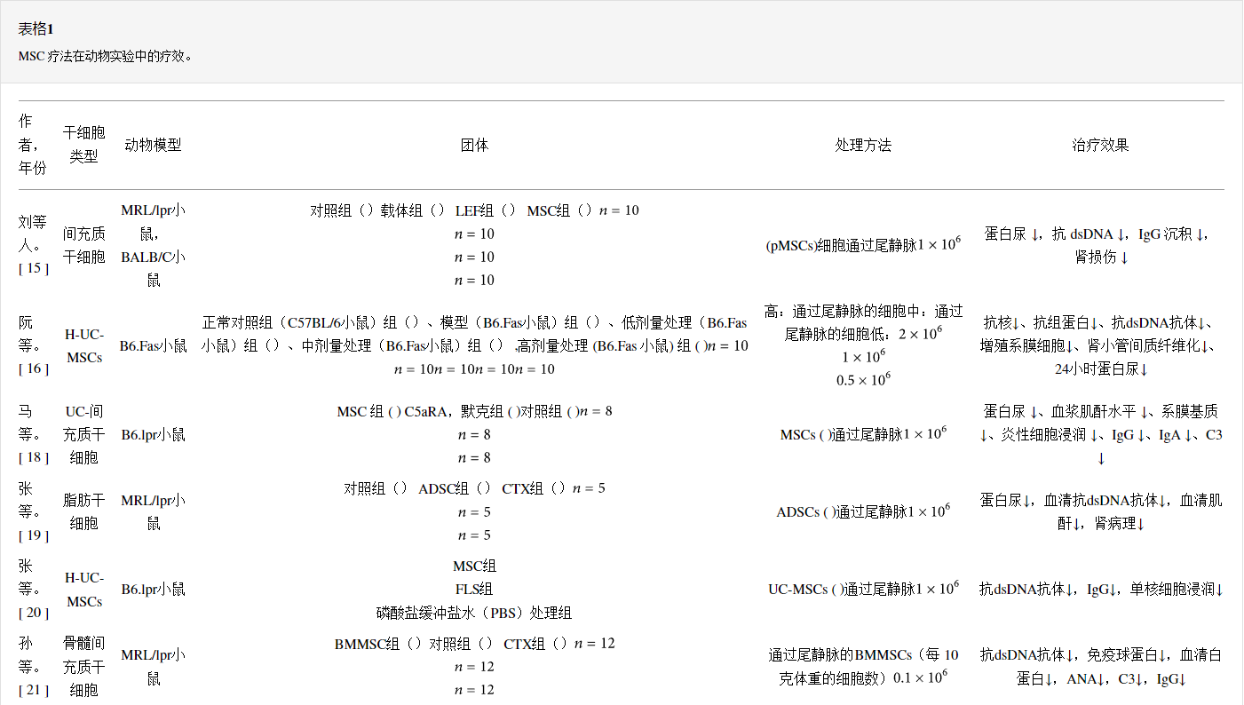 間充質(zhì)干細(xì)胞治療系統(tǒng)性紅斑狼瘡的療效:臨床前模型