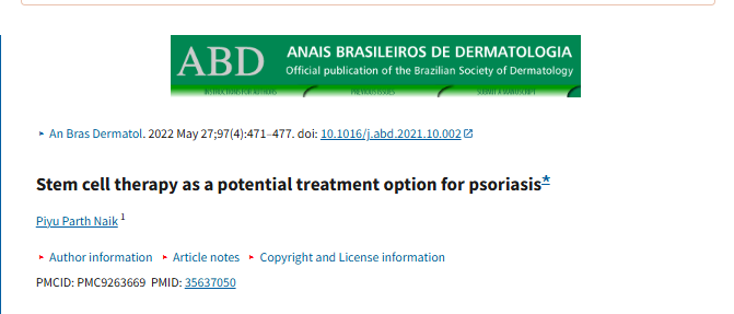 2022年5月27日,沙特德國醫(yī)院在國際期刊《ANAIS BRASILEIROS DE DERMATOLOGIA》上發(fā)布了一篇《干細胞療法是治療牛皮癬的潛在選擇》的研究結(jié)果。