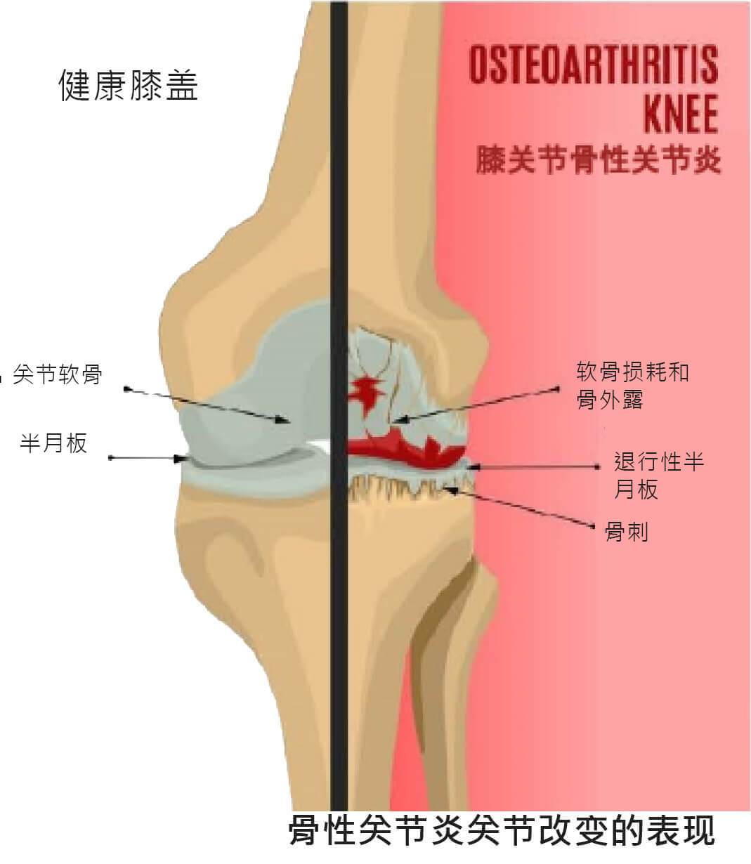 覆蓋在骨頭兩端的軟骨使骨頭能夠順利地相互滑行,只有輕微的摩擦。OA導致軟骨的損壞,并導致摩擦增加 – 導致疼痛,炎癥,并最終導致活動能力和功能的喪失。
