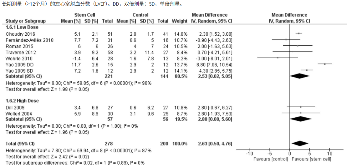 對于療效,干細(xì)胞療法并非即時見效的“特效藥”。研究顯示,患者心臟左室射血分?jǐn)?shù)(LVEF)在6個月內(nèi)的提升僅約1.23%,尚未達到統(tǒng)計學(xué)顯著水平。然而,隨著隨訪時間延長至12個月以上,心功能的改善幅度逐漸明顯,LVEF平均提高了約2.63%。