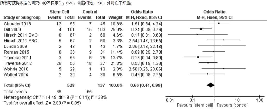 在長達數(shù)年的隨訪中,接受干細(xì)胞治療的患者總體不良事件風(fēng)險降低了約34%(OR=0.66),包括死亡、再次心梗和心衰再住院等重要臨床終點。更令人放心的是,研究中并未報告與干細(xì)胞治療直接相關(guān)的腫瘤病例,初步證實干細(xì)胞療法在短中期是相對安全可靠的。