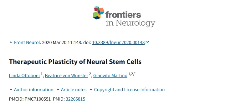 參考資料:Ottoboni L, von Wunster B, Martino G. Therapeutic Plasticity of Neural Stem Cells. Front Neurol. 2020 Mar 20;11:148. doi: 10.3389/fneur.2020.00148. PMID: 32265815; PMCID: PMC7100551.