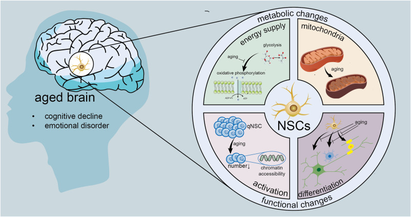 綜上所述,衰老過程導致NSCs的內在和外在發生改變,從而引起其功能變化,尤其是其再生潛力和AHN明顯下降。