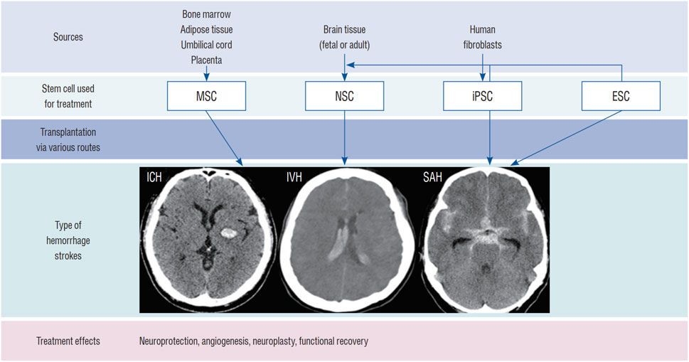 2016年,Chang等通過一項(xiàng)“細(xì)胞療法治療腦出血:五年隨訪報(bào)告”研究發(fā)現(xiàn),在患有中重度ICH后遺癥(超過60個(gè)月)的患者中,骨髓或臍帶MSC移植的功能恢復(fù)優(yōu)于單獨(dú)的手術(shù)血腫清除。