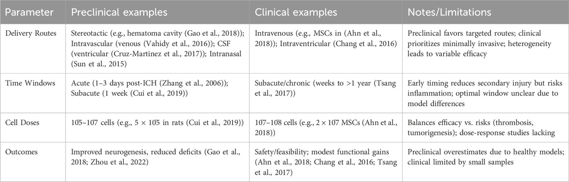 (表1總結(jié)了關(guān)鍵轉(zhuǎn)化參數(shù),包括臨床前和臨床研究中的途徑、時(shí)間窗和劑量)