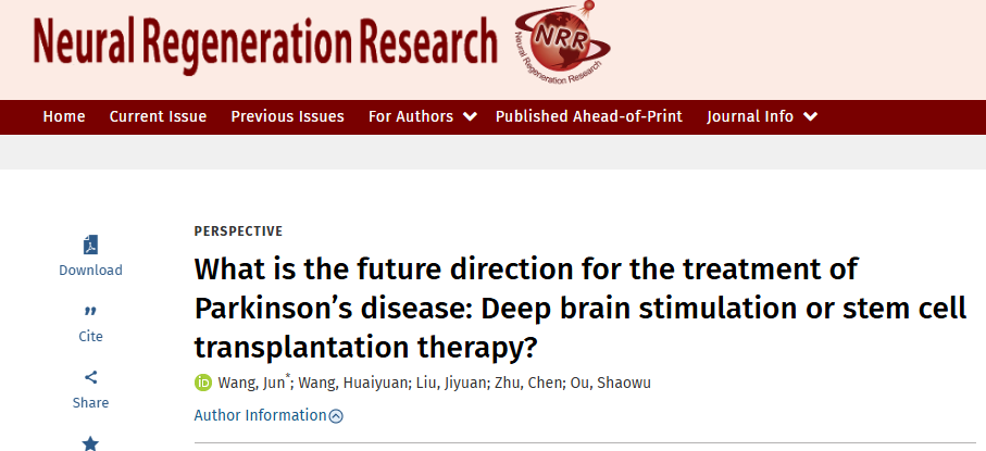 [1]:王軍* ;王懷遠;劉濟源;朱,陳;歐紹武. 帕金森病治療的未來方向是什么:深部腦刺激療法還是干細胞移植療法?. 神經再生研究(Neural Regeneration Research):10.4103/NRR.NRR-D-25-01747,2026年2月5日。| DOI: 10.4103/NRR.NRR-D-25-01747