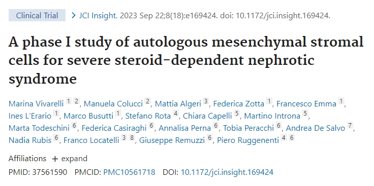 Vivarelli, M. et al. A phase 1 study of autologous mesenchymal stromal cells for severe steroid-dependent nephrotic syndrome.?JCI Insight?8, e169424 (2023).