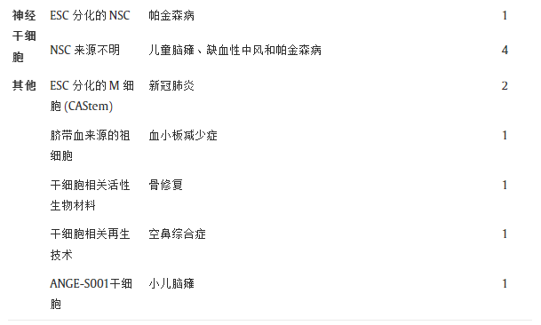 表2:中國自2015年以來使用人類胚胎干細胞進行的臨床試驗總結