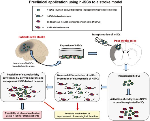 中風(fēng)后人腦中iSC具有神經(jīng)元分化潛力的證據(jù)表明,iSC具有再生缺血性中風(fēng)后受損大腦的潛力。此外,iSC是在缺血性中風(fēng)等病理條件下特異性誘導(dǎo)的干細(xì)胞。因此,如果能夠?qū)χ酗L(fēng)患者使用基于人源iSC (h-iSC) 的療法,那將是理想的選擇。