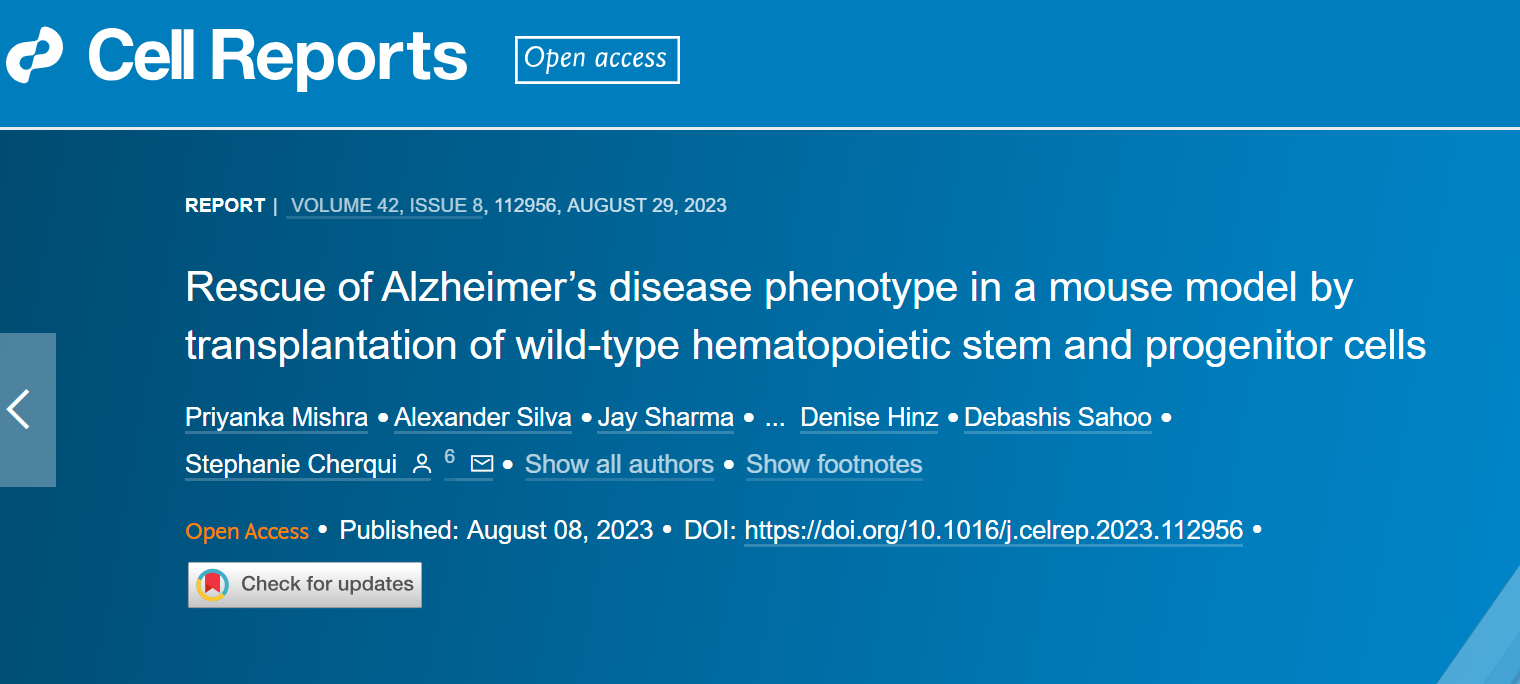 在近日發表在《細胞報告》(Cell Reports)上的這項研究中,研究人員證明,移植造血干細胞和祖細胞可以有效緩解阿爾茨海默病小鼠模型的多種癥狀和體征。與其他阿爾茨海默病小鼠相比,接受健康造血干細胞的小鼠表現出記憶和認知功能保留,神經炎癥減少,β-淀粉樣蛋白積聚顯著減少。