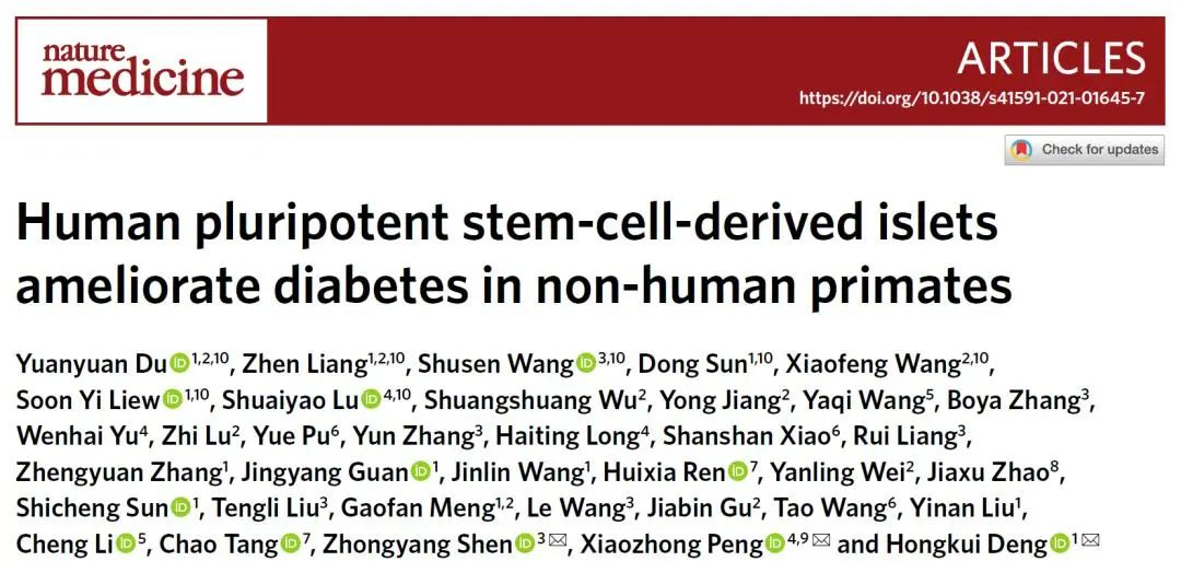 作為國際首個在非人靈長類模型上系統地評價人多能干細胞來源的胰島細胞治療糖尿病可行性的研究,本研究在非人靈長類動物模型上證明了人多能干細胞分化的胰島細胞在糖尿病治療中的安全性和有效性。