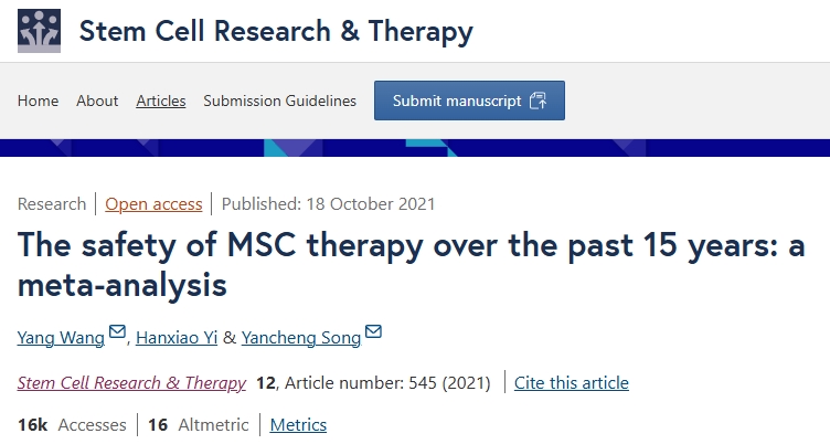 例如,2021年,期刊雜志“Stem Cell Research&Therapy”發表了一篇“過去15年MSC治療的安全性:薈萃分析”的文獻綜述。