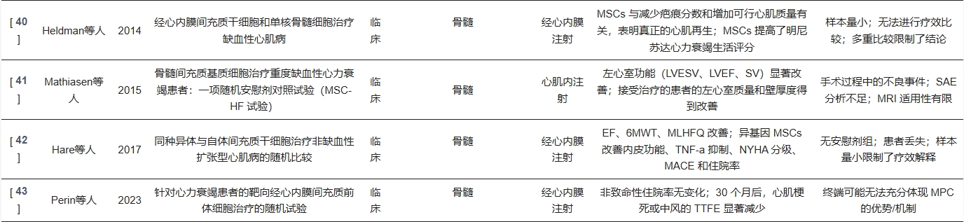 研究還揭示了BM-MSC治療的一些重要特性:在非缺血性擴(kuò)張型心肌病中,一項(xiàng)對(duì)比自體與同種異體MSC的試驗(yàn)發(fā)現(xiàn),同種異體MSC可使 LVEF提高8.0%且6MWD增加37分鐘,而自體MSC僅使LVEF提高5.4%,且功能無(wú)顯著改善。這表明,同種異體MSC因其免疫調(diào)節(jié)特性,可能是一種更可行的現(xiàn)成治療選擇。