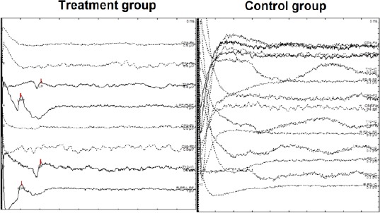 根據完全截癱或四肢癱瘓記錄運動功能的變化。在這項研究中,五分之三的患者恢復了運動功能(表格1); 他們可以在沒有支撐或一點幫助的情況下用自己的腿站立和行走。三名患者出現SSEP變化,脛神經皮質反應和 P37 陽性。記錄了三名患者的肌電圖 (EMG) 變化,在肌肉機電表上顯示了一些運動單元(圖1)。