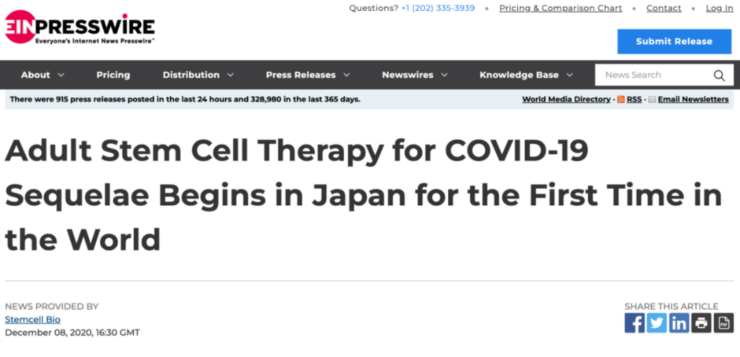 為應對日本國內受新冠后遺癥的影響,日本早在2020年12月就已宣布開始針對新冠后遺癥的成人群體,合法開展使用自體脂肪間充質干細胞治療新冠后遺癥的計劃。?