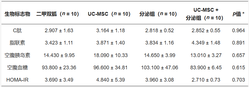 - 其他所有治療組(二甲雙胍、UC-MSC、聯(lián)合治療)均未觀察到HOMA-IR的顯著變化。