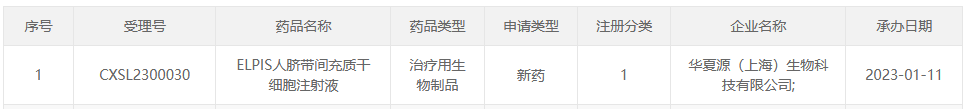 今日,據國家藥品監督管理局藥品審評中心(CDE)官網最新公示,華夏源(上海)生物科技有限公司(以下簡稱“華夏源”)“ELPIS人臍帶間充質干細胞注射液”新適應癥臨床試驗申請(IND)已獲得受理(受理號:CXSL2300030)。申報適應癥為:中、重度宮腔粘連。