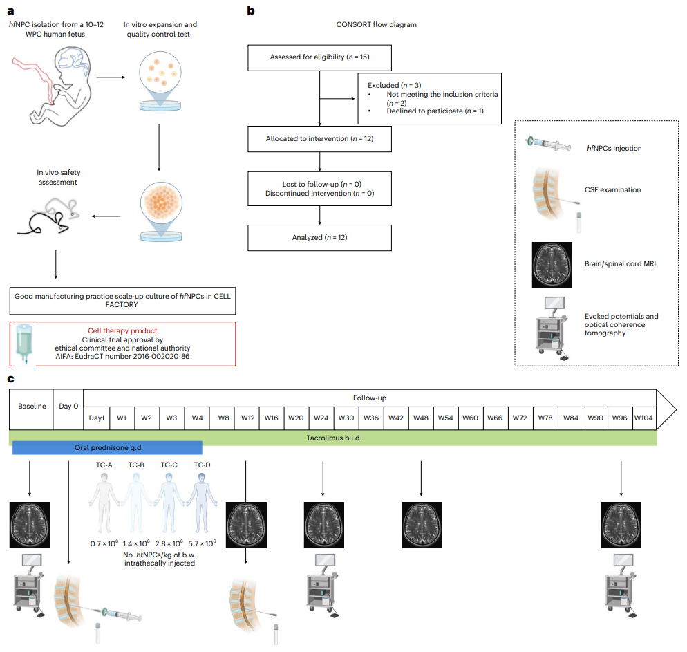 2023年1月9日,意大利IRCCS San Raffaele科學研究所等機構的研究人員在國際頂尖醫學期刊Nature Medicine 上發表了題為:Neural stem cell transplantation in patients with progressive multiple sclerosis: an open-label, phase 1 study 的研究論文。