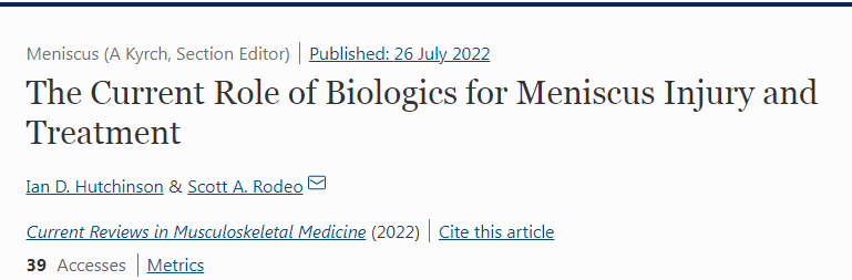 近年來,利用包括干細胞在內的生物制劑來治療半月板損傷的研究越來越常見。2022年6月,科學家在《Current Reviews in Musculoskeletal Medicine》提出,生物制劑有望提升半月板損傷術后的修復和愈合速度,并且在實驗室研究階段已經取得重大突破。