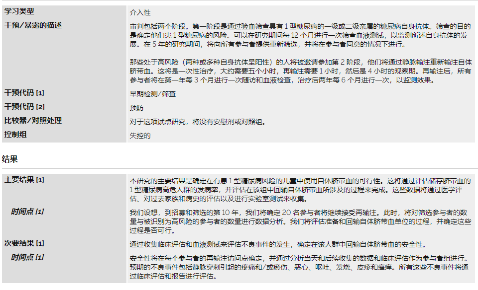 澳大利亞的一項(xiàng)研究正在招募1至12歲的兒童,以了解重新輸注自己的臍帶血是否有助于預(yù)防I型糖尿病風(fēng)險(xiǎn)增加的兒童。