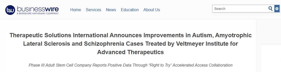 2022年,Therapeutic Solutions International宣布由Veltmeyer高級治療研究所治療的自閉癥、肌萎縮側索硬化癥和精神分裂癥病例病情有所好轉。