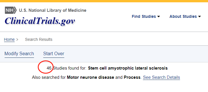 截止2022年11月,在美國國立衛(wèi)生研究院的最大臨床試驗注冊庫clinicaltrials.gov網站上注冊的有關干細胞治療漸凍癥的臨床研究項目有46項。