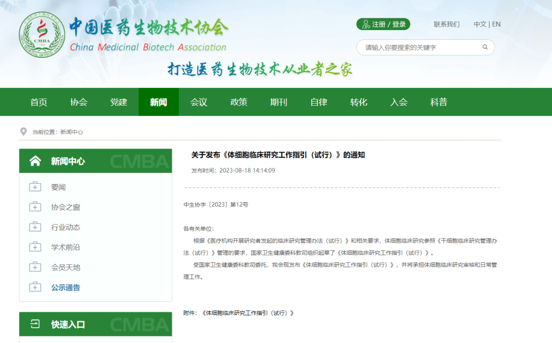 8月18日,中國醫(yī)藥生物技術(shù)協(xié)會發(fā)布《體細胞臨床研究工作指引(試行)》,以促進醫(yī)療機構(gòu)研究者發(fā)起的體細胞臨床研究健康發(fā)展,加強對醫(yī)療機構(gòu)開展體細胞臨床研究工作的指導(dǎo)。(來源:中國醫(yī)藥生物技術(shù)協(xié)會官網(wǎng))