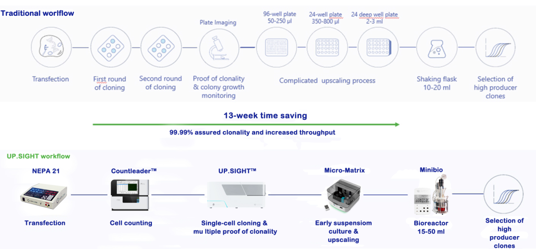 而美國(guó)FDA對(duì)于干細(xì)胞的質(zhì)量控制內(nèi)容則相對(duì)更為全面,其干細(xì)胞質(zhì)控覆蓋了干細(xì)胞產(chǎn)品從研發(fā)到上市整個(gè)周期。FDA僅接受采用單克隆細(xì)胞生產(chǎn)生物藥,其政策和法規(guī)都強(qiáng)制要求生物制藥企業(yè)提供證據(jù)以證明細(xì)胞的單克隆源性。針對(duì)此,UP.SIGHT將具有高效、快速和溫和的單細(xì)胞分選技術(shù)與超快速、高質(zhì)量的成像系統(tǒng)相結(jié)合,可實(shí)現(xiàn)噴嘴成像和3D全孔成像,在分離細(xì)胞的前后過(guò)程會(huì)連續(xù)拍取多張細(xì)胞圖片并儲(chǔ)存在磁盤中以便追蹤,為單細(xì)胞克隆性提供直接的證據(jù)。