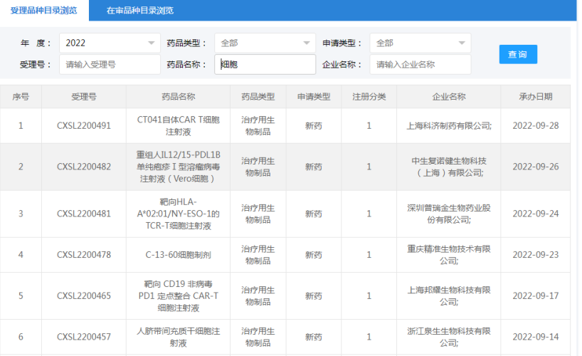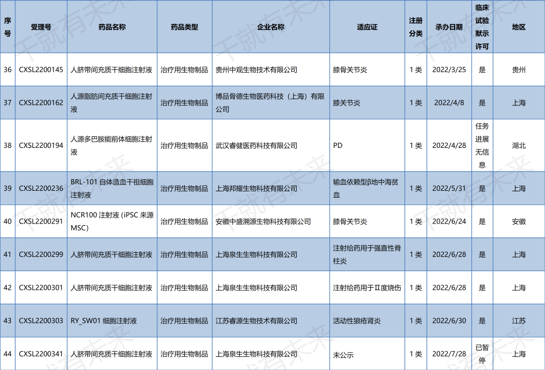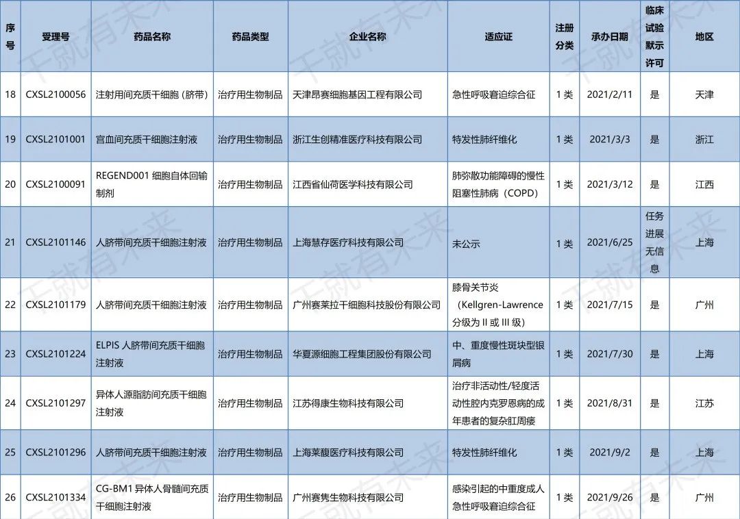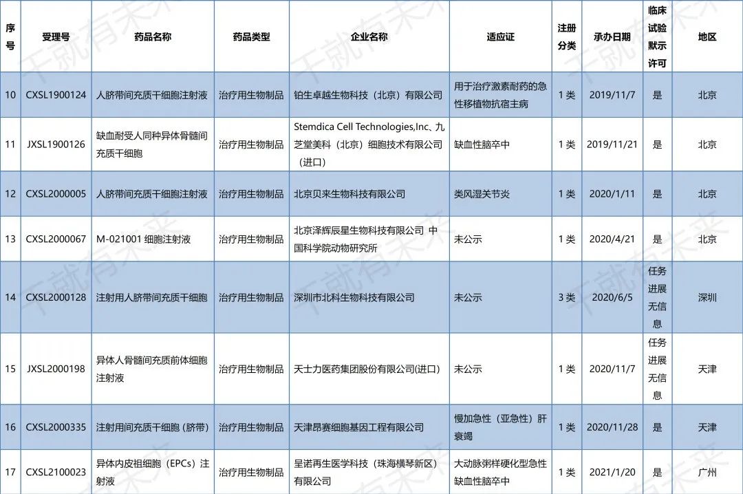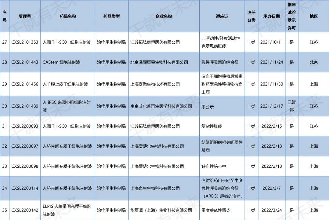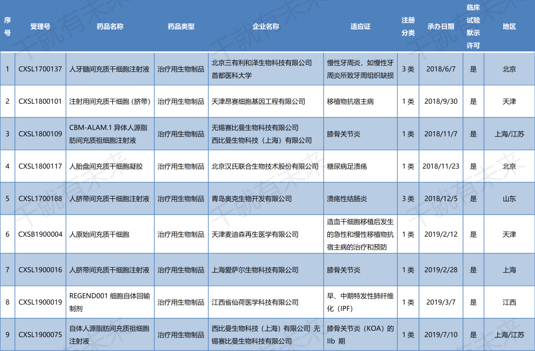 國內干細胞藥物臨床試驗申請受理清單