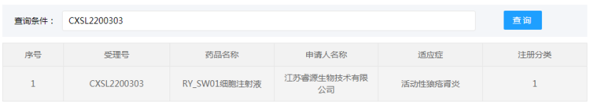 江蘇睿源生物技術有限公司的“RY_SW01細胞注射液(間充質干細胞藥物)的藥物臨床試驗申請獲得默示許可(受理號:CXSL2200303),適應證為:活動性狼瘡腎炎。