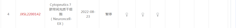 2022年8月29日 Cytopeutics Sdn Bhd (MY)/璽瑞生命科學(深圳)有限公司的“Cytopeutics 臍帶間充質干細胞(Neuroncell-EX)”(受理號:JXSL2200142)的IND評審暫停。