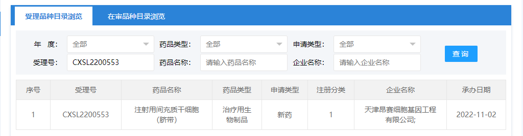 新增受理:2023年1月5日,武漢光谷中源藥業(yè)有限公司“VUM02注射液”(人臍帶源間充質干細胞注射液)的藥物臨床試驗申請獲受理(受理號:CXSL2300006)。這是該干細胞注射液的第2種適應證,此前失代償期肝硬化的臨床試驗申請已于2022年11月22日獲得受理(受理號:CXSL2200586),目前處于CDE審評階段。
